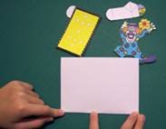 14. להניח את תבנית הליצן על החלק השמאלי של הכרטיס.