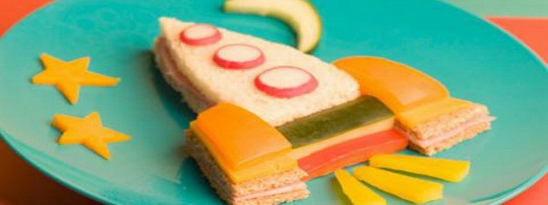 - לחתוך את פרוסות הלחם הלבן לצורת חללית. למלא את הכריך בממרח הרצוי.