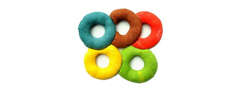 - לחלק את הבצק ל-4 כדורים ולצבוע אותם בצבעים של הטבעות האולימפיות. אם אתם נמנעים מלהשתמש בצבע מאכל שחור, ניתן להוסיף לכדור הבצק האחרון את כמה טיפות מכל צבעי המאכל בהם השתמשתם כך שיתקבל צבע חום.