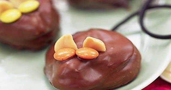 החומרים (להכנת 24 "עכברים"): 1 כוס שוקולד צ'יפס 1 כף שמן 48 משמשים מיובשים שיפודי עץ עדשים (סוכריות שוקולד) סוכריות סוס (ליקוריץ) שבבי שקדים מקולפים אופן ההכנה: לשים את השוקולד צ'יפס והשמן במיקרוגל במהירות גבוהה למשך כדקה. להוציא את השוקולד, לערבב ולשים שוב במיקרוגל למשך דקה. להוציא ולערבב עד שתתקבל […]